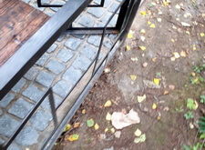 Далее мы приварили к нижней части оградки металлические полосы, которые и послужат бортами для будущего наземного покрытия из гранитной брусчатки.