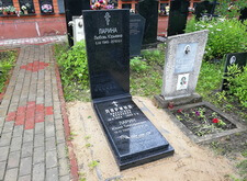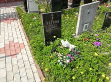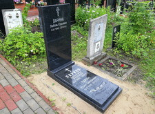 На него установили цветник и подставку для памятника. Борта цветника накрыли стоявшей ранее на участке гранитной доской, предварительно её отполировав и добавив гравировки. Получившаяся надгробная плита выглядит довольно-таки презентабельно.