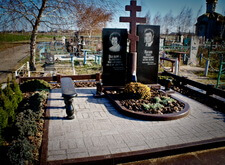 Классический мемориальный комплекс. Здесь нет сложных элементов, нет глубокой концепции. Есть четкие и понятные формы. Яркий религиозный акцент. Благодаря комплексному подходу – могила ухожена, долг перед родителями исполнен.
